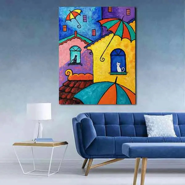 تابلو بوم چاپی لاویا طرح خونه و چتر کد ART-2037