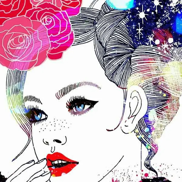 تابلو بوم چاپی لاویا طرح پرتره زن و گل کد ART-1637