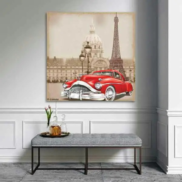 تابلو بوم چاپی لاویا طرح خودرو قرمز در پاریس کد ART-1274
