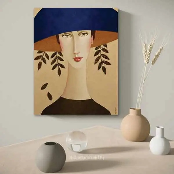 تابلو بوم چاپی لاویا طرح پرتره زن با کلاه کد ART-1476