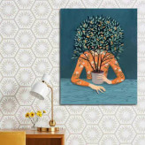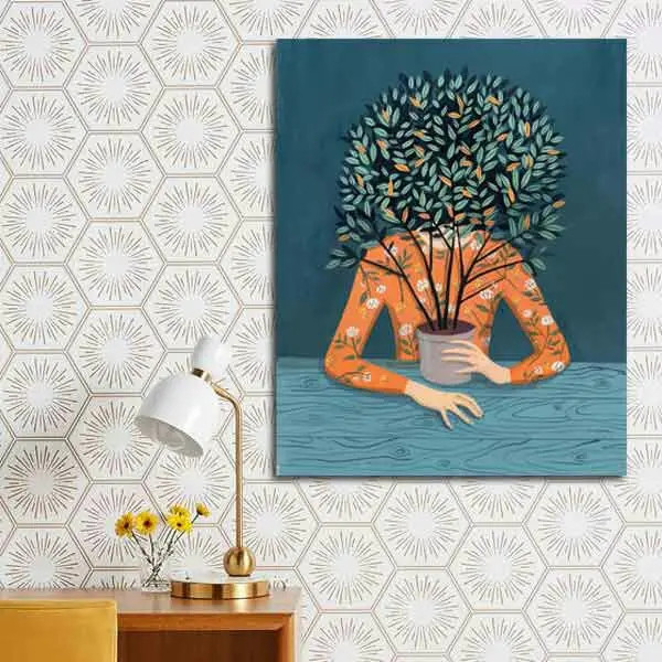 تابلو بوم چاپی لاویا طرح زن و گلدان کد ART-1088