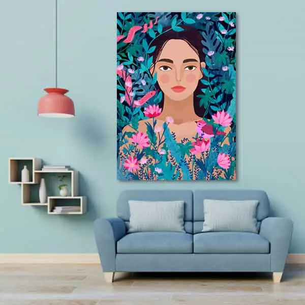 تابلو بوم چاپی لاویا طرح زن و گل کد ART-1549