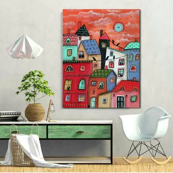 تابلو بوم چاپی لاویا طرح خونه ها کد ART-2036