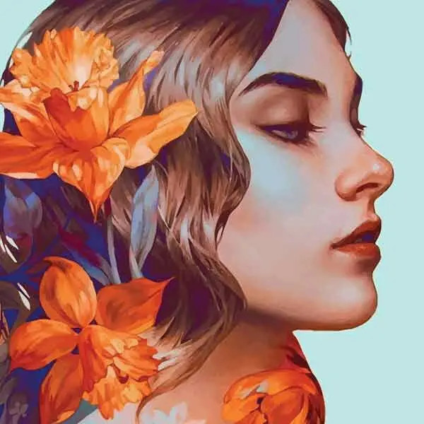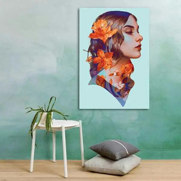 تابلو بوم چاپی لاویا طرح پرتره زن و گل کد ART-1730