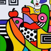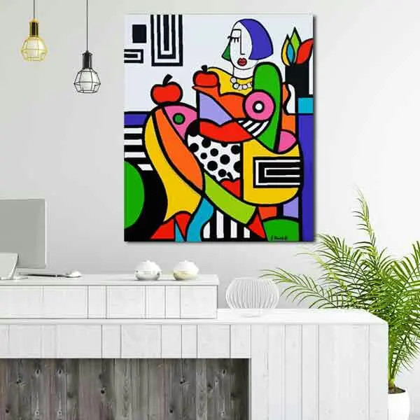 تابلو بوم چاپی لاویا طرح کوبیسم زن و سیب کد ART-2056