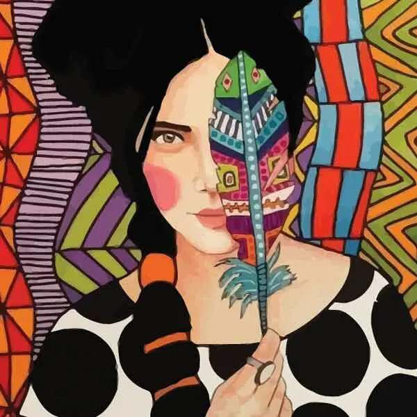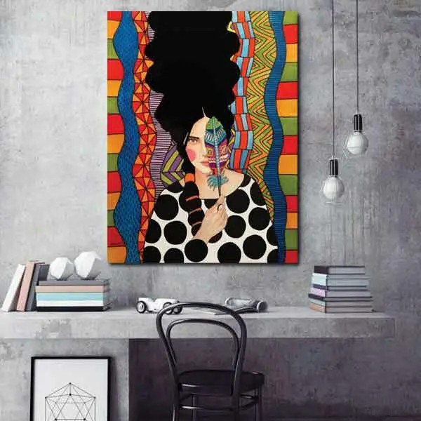 تابلو بوم چاپی لاویا طرح نقاشی ترک زن و پر کد ART-874