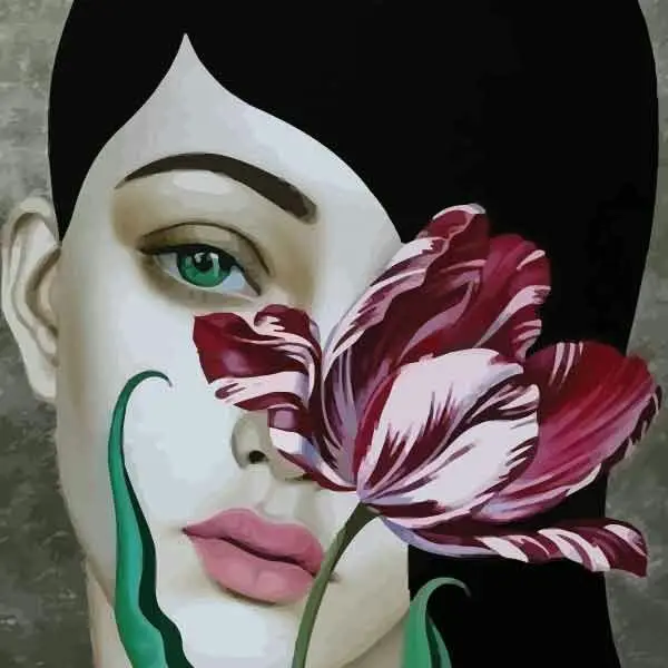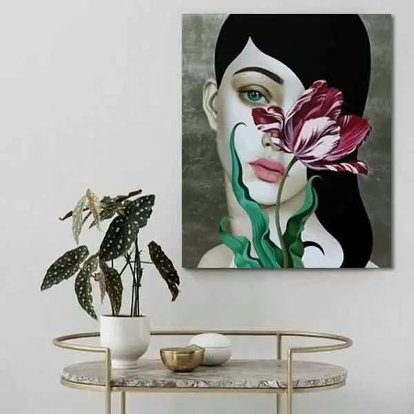 تابلو بوم چاپی لاویا طرح پرتره زن و گل کد ART-905
