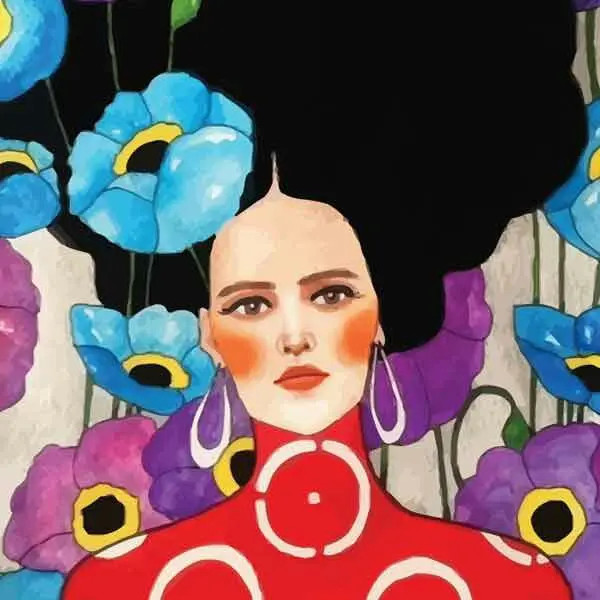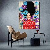 تابلو بوم چاپی رزبوم طرح نقاشی ترک زن و گل کد ART-1099