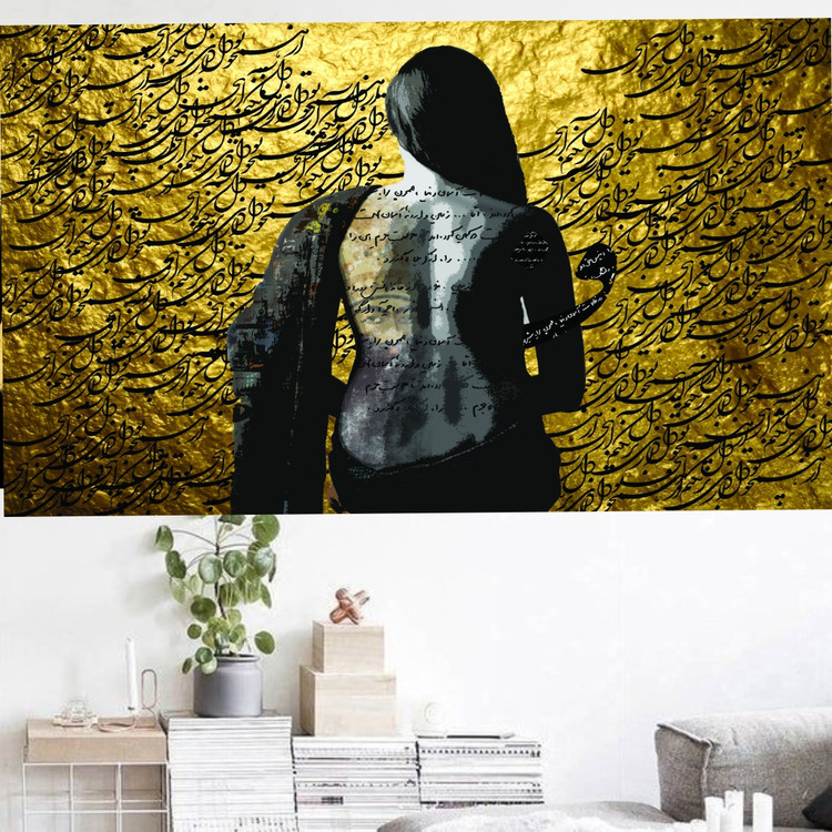 تابلو بوم دکوری طرح دختر و شعر ۱