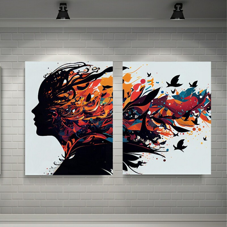 تابلو بوم طرح دختر گل مدل مینیمال مجموعه دو عددی