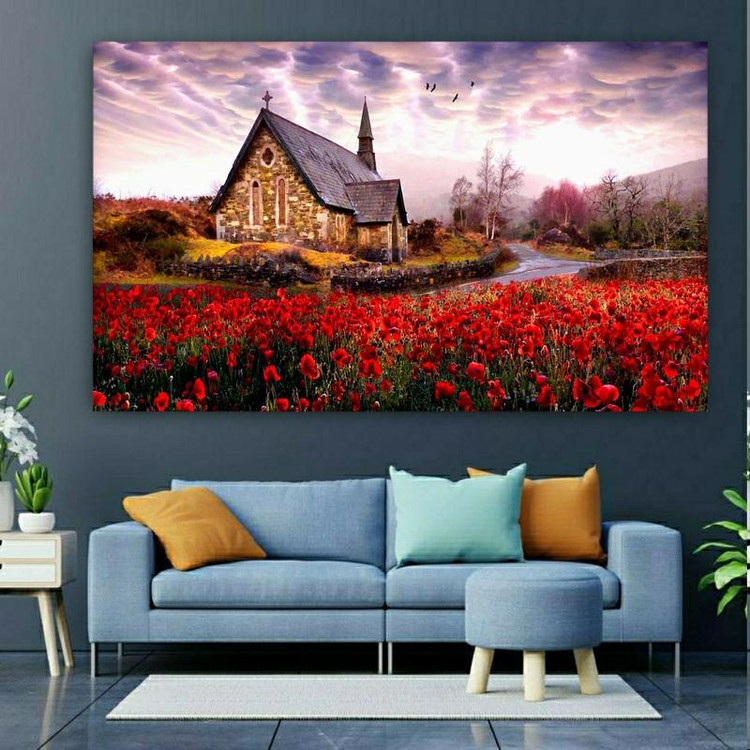 تابلو بوم طرح کلبه ای میان گل کد bj54