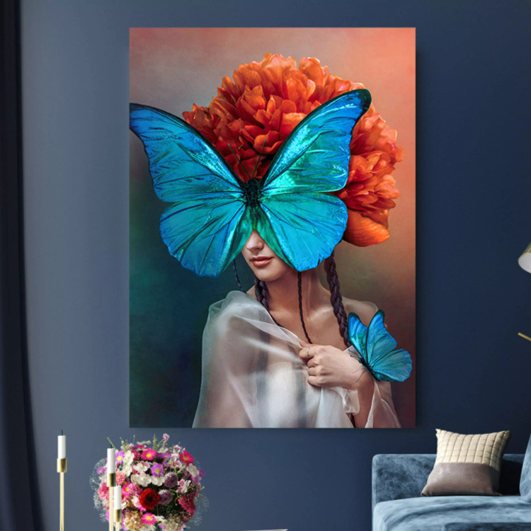 تابلو زن و پروانه آبی ( 876-MR ART )