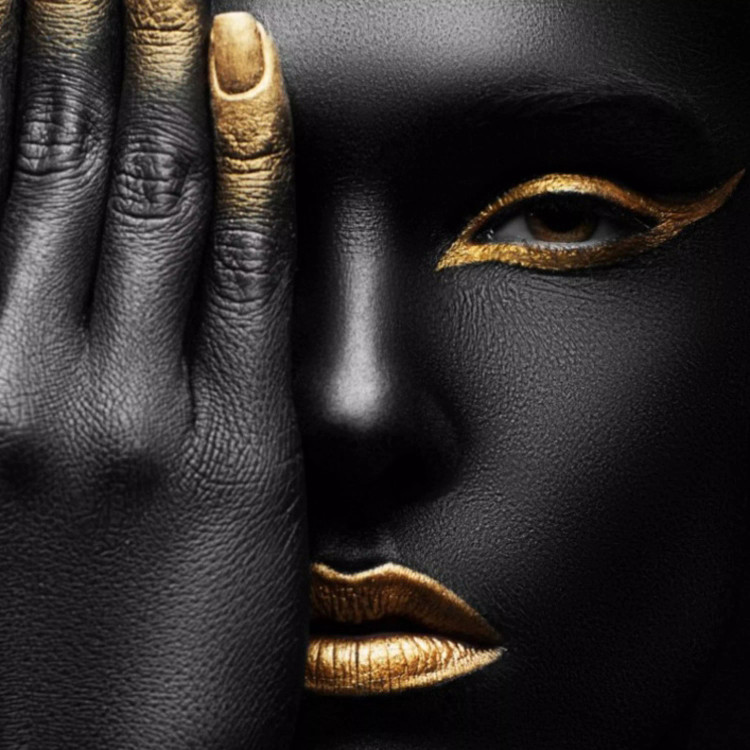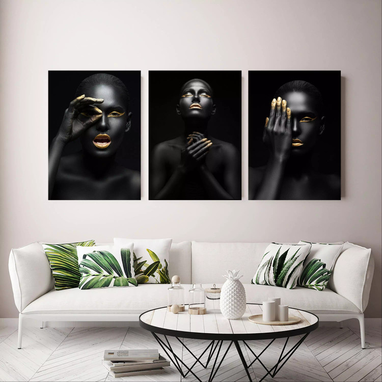 تابلو بوم طرح زن سیاه و طلایی مجموعه 3عددی90*60