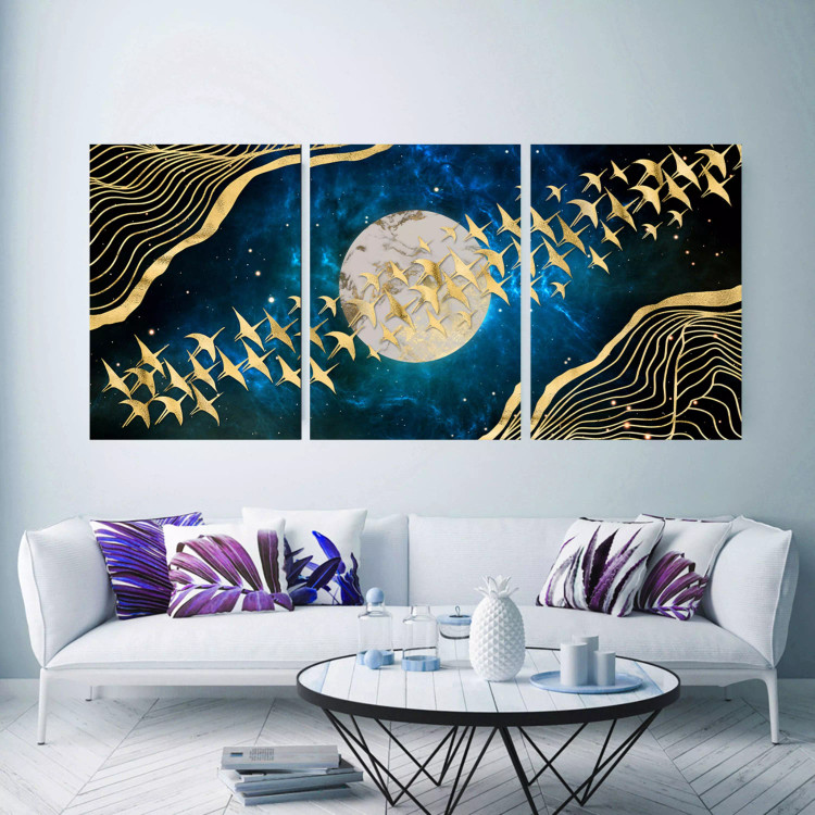 تابلو بوم طرح ماه و پرنده مجموعه 3 عددی