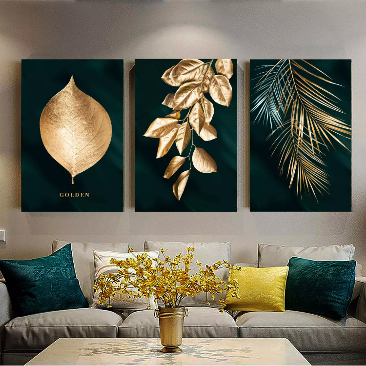 تابلو بوم طرح برگ طلایی مجموعه 3 عددی