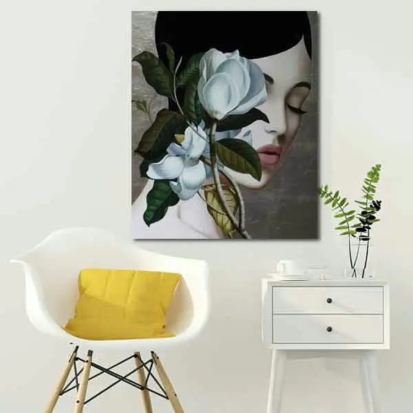 تابلو بوم چاپی لاویا طرح نقاشی زن و گل کد ART-903
