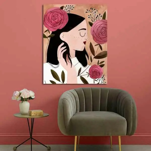 تابلو بوم چاپی لاویا طرح دختر و گل کد ART-1536