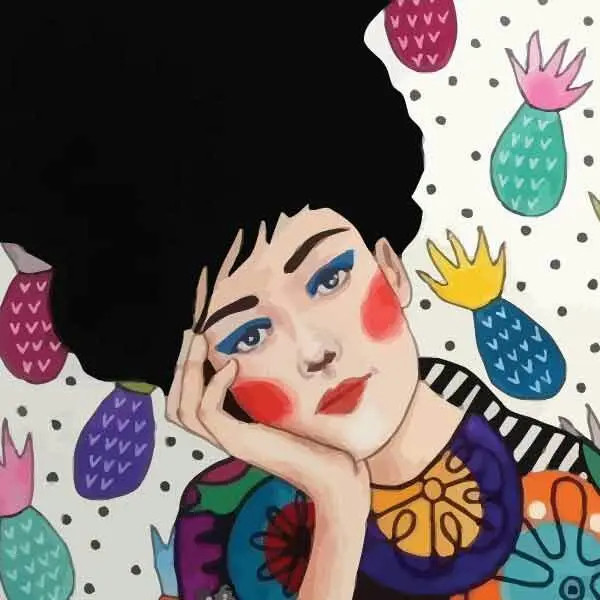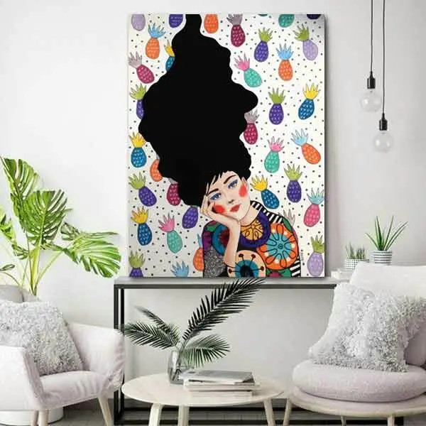 تابلو بوم چاپی لاویا طرح نقاشی ترک زن و آناناس کد ART-1080