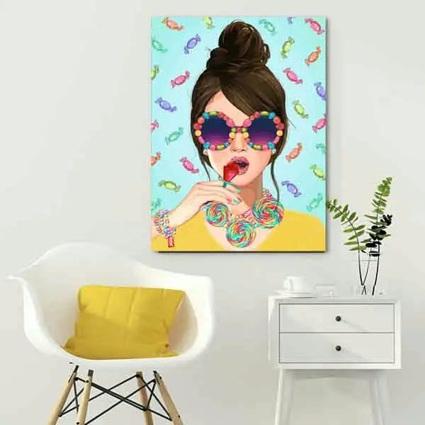 تابلو بوم چاپی لاویا طرح پرتره زن و شکلات کد ART-2086