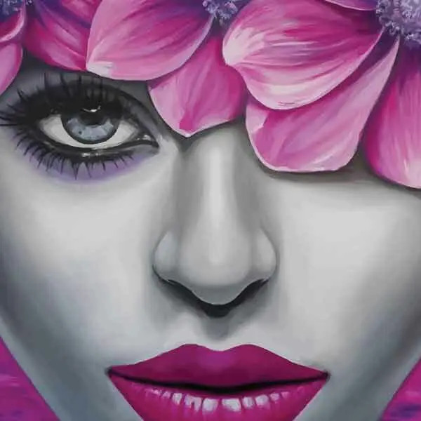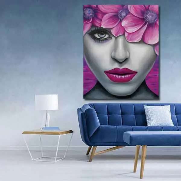 تابلو بوم چاپی لاویا طرح پرتره زن با گل صورتی کد ART-1081