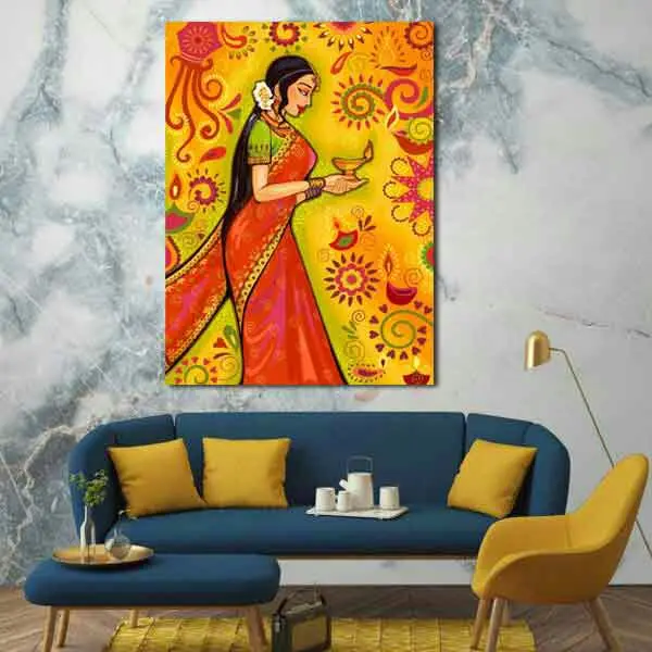 تابلو بوم چاپی لاویا طرح زن هندی کد ART-2068